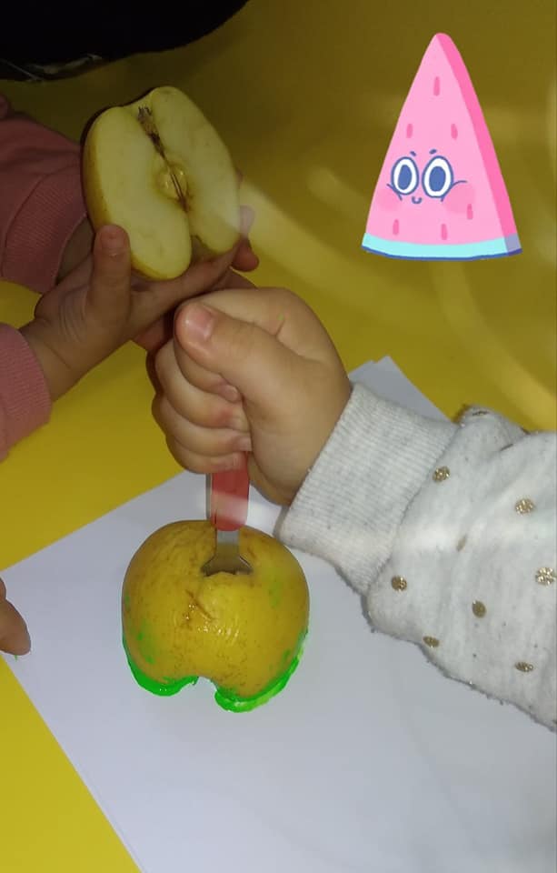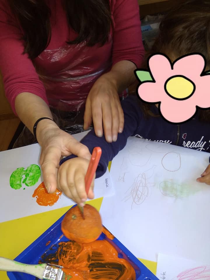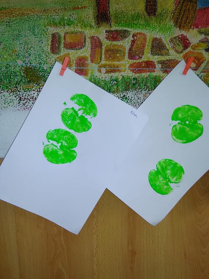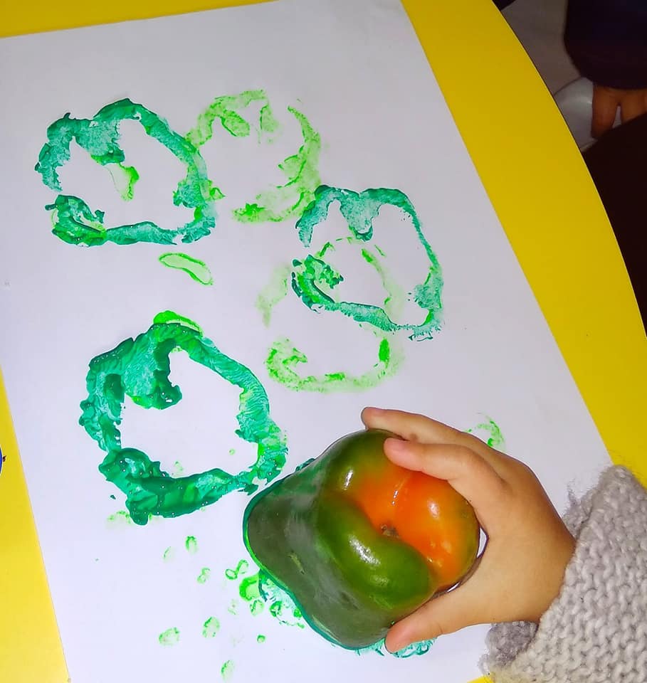 Hemos pintado con alcachofas, patatas, pimientos, manzanas, naranjas……