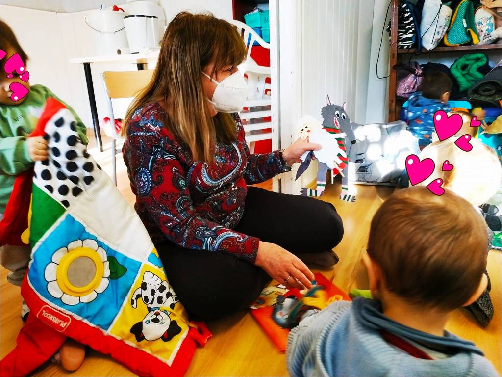 A los pequeñitos, les gustan la oveja y el lobo en movimiento… Y… se levantan, se sientan, tiran del rabo al lobo, se los quieren comer…