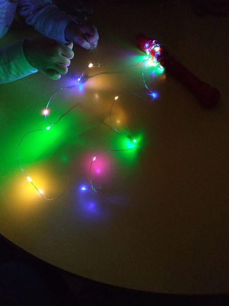 Llegan las velas, linternas, reproductor de imágenes, tubos luminosos llenos de colorines…