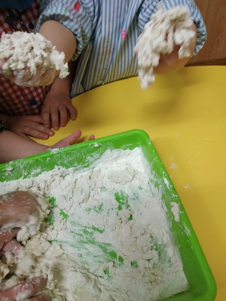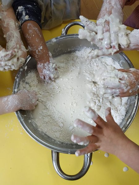 Para representar el papel en cuestión, han hecho engrudo. Ya sabéis que se trata de una masa muy pegajosa.¡ A los niñ@s les encanta!