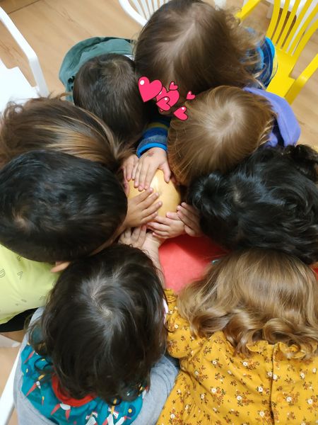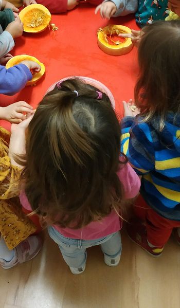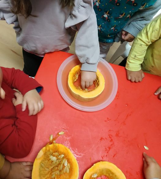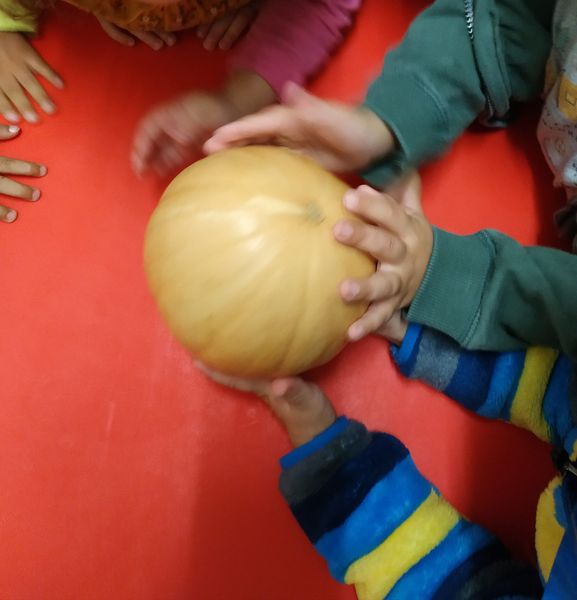 Hemos jugado con una calabaza que nos ha traído el otoño.¡qué bien!