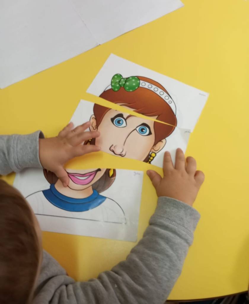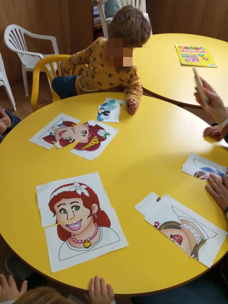 Jugamos con Caillou, láminas de caras divertidas, puzzles de niñ@s y muñecos:
