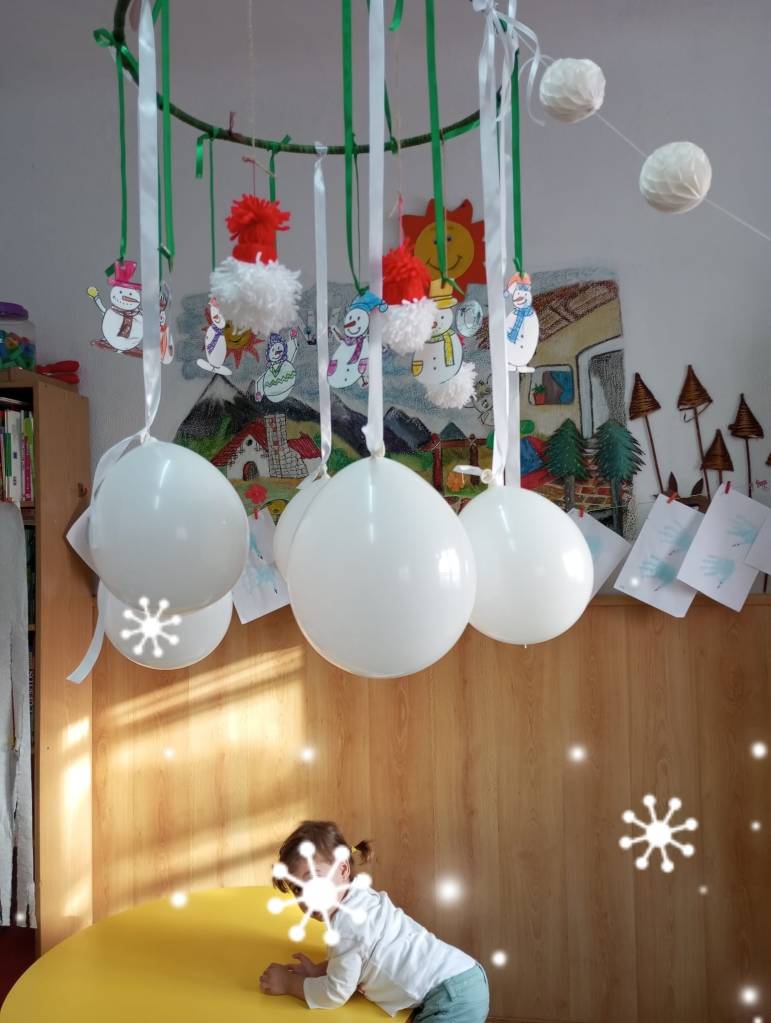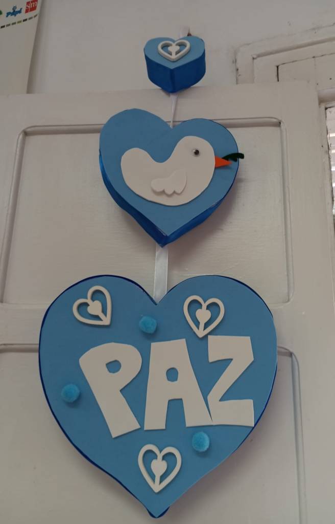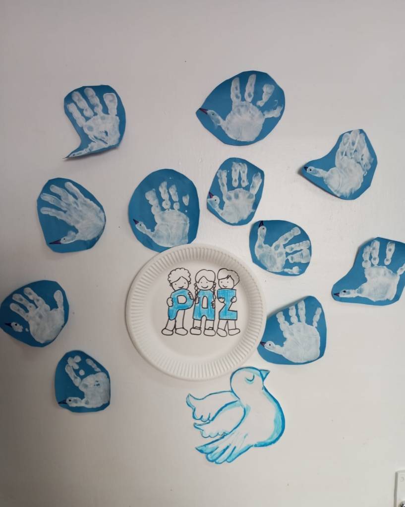 Nuestra clase se llena de blanco ( la ropa que vestimos, adornos, juguetes..)y de símbolos de paz.¡Todo está precioso!