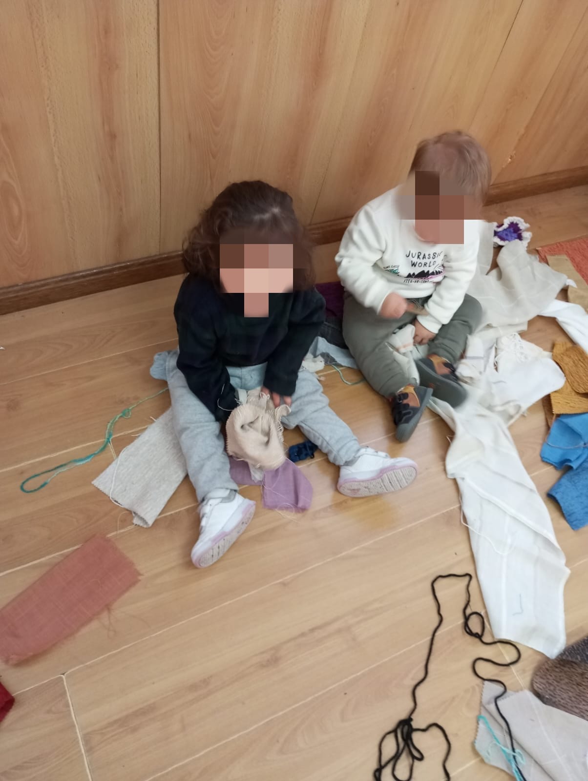 Los materiales textiles tienen muchas posibilidades en juegos sensoriales y de desarrollo de motricidad fina.